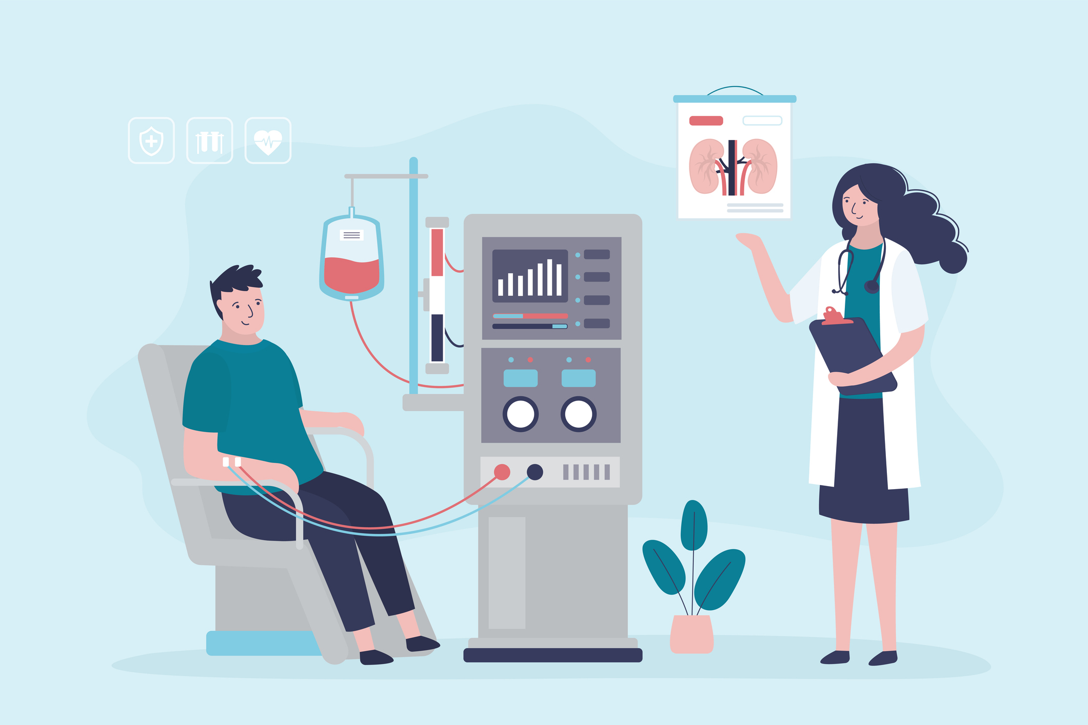 Kidneys do vital work, including filtering waste products from the blood and keeping minerals in balance. But certain conditions, like high blood pressure and diabetes, can damage them. That can lead to kidney failure (also called end-stage kidney disease). When that happens, machines are used to help with some of the kidneys’ key functions—a process called dialysis.